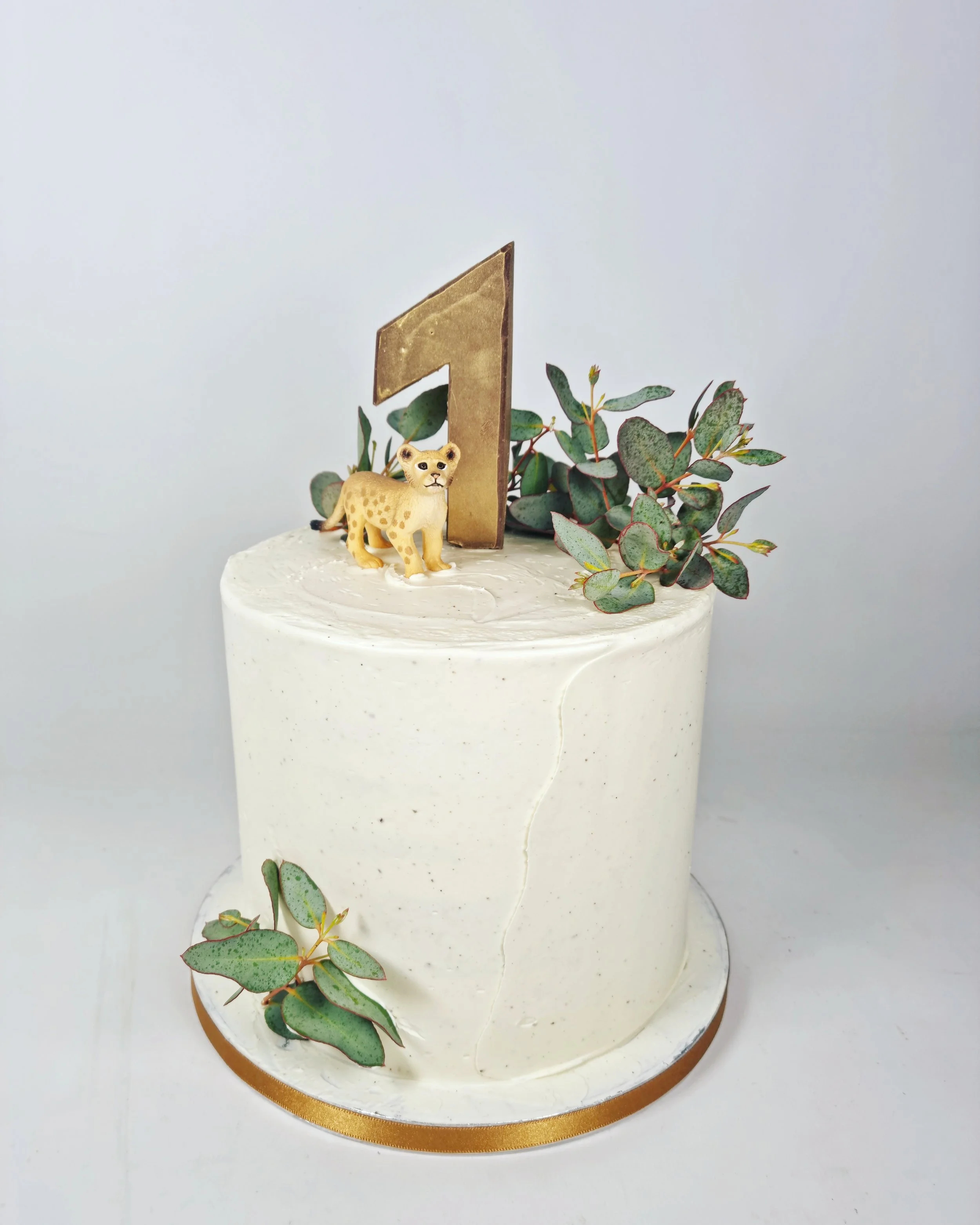 elegante Torte mit Baby Tier (Löwe, Giraffe oder Eisbär) und Ziffer